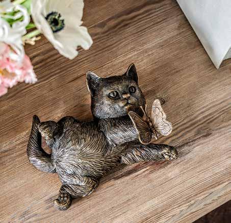 Det är svårt att inte älska den här uttrycksfulla lilla kattungen i brons som leker med en fjäril. Doris kommer skapa glädje vid första ögonblicket och resten av livet. Passar vackert i din trädgård eller tillsammans med en grupp andra favoriter i bokhyllan, byrån eller fönstret.