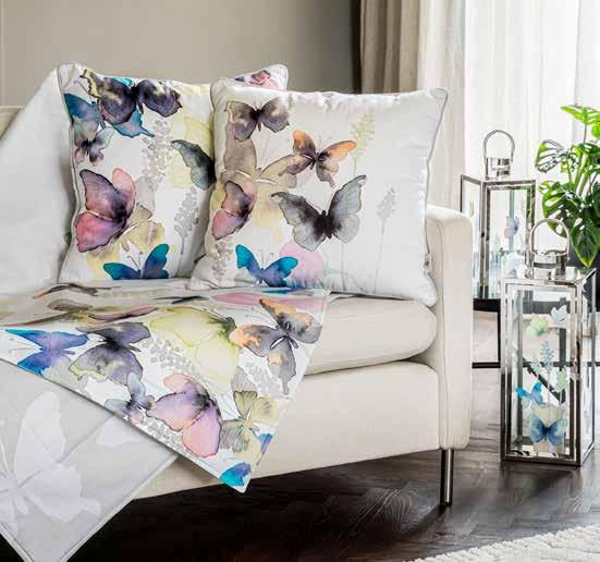Addera flyktiga fjärilar och härliga färgtoner till soffa eller fåtölj. Akvarellfärgerna ger livfullhet i målat pärlhyacint, luktärt och fladdrande fjärilar. Den härliga pläden är tillverkad i 100% bomullssatin, fylld med polyesterfiber och känns sval och mjuk mot huden. Fjärilar och blommor framhävs fint när lyktorna i skinande rostfritt stål tänds upp i skymningen. Liten lykta 35 cm | Stor lykta 45 cm Ord. pris 700/990 kr (10012077/10012076)