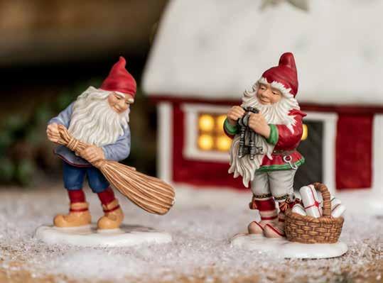 Charmas av våra tomtar från Tomtegården, illustrerade av konstnären Lars Carlsson. Tomtarna utför sina sysslor, som att sopa fint utanför stugan och hålla koll på nycklar och julklappar. Porslinsfigurerna är omsorgsfullt handmålade i finaste kvalitet och du kommer förundras över alla detaljer och deras realistiska uttryck.