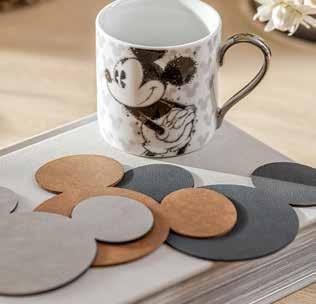 Glasunderlägg i form av Musse Pigg som med sin ikoniska siluett är världens mest igenkända figur. Inför Disneys 100-årsjubileum har vi i samarbete med danska designföretaget Lind DNA och Disney tagit fram hållbara glasunderlägg i återvunnet läder som skyddar bordet.