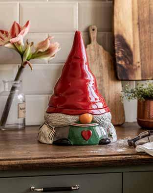 Kakgömman med lock i luvan är tillverkad i handmålad keramik med Åsas ulltomte Victoria som förlaga. Blir fin som förvaring till småkakor, hemkokta kolor eller pepparkaksformar. Platsar i köket eller på ett sidobord som både dekoration och förvaring.
