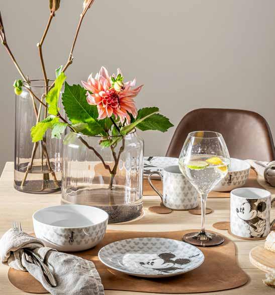 ljuslyktor med siluetter av Musse, Långben, Mimmi, Pluto, Kalle Anka och Kajsa Anka. Skapade i samarbete med konstnären Stefan Lindahl är de en hyllning till de älskade Disney-karaktärerna. Med motiv och kant i skimrande guld och förtrollande guldstjärnor skapas en magisk atmosfär.