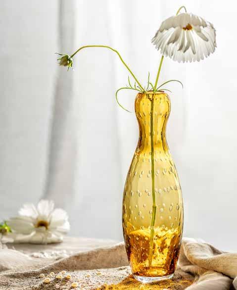 Med minnen från sin barndom vid havet och snäckskalens förtrollande pärlor har designer Ritva-Liisa hämtat inspiration till denna vackra vas i trendig naturnära kulör.
