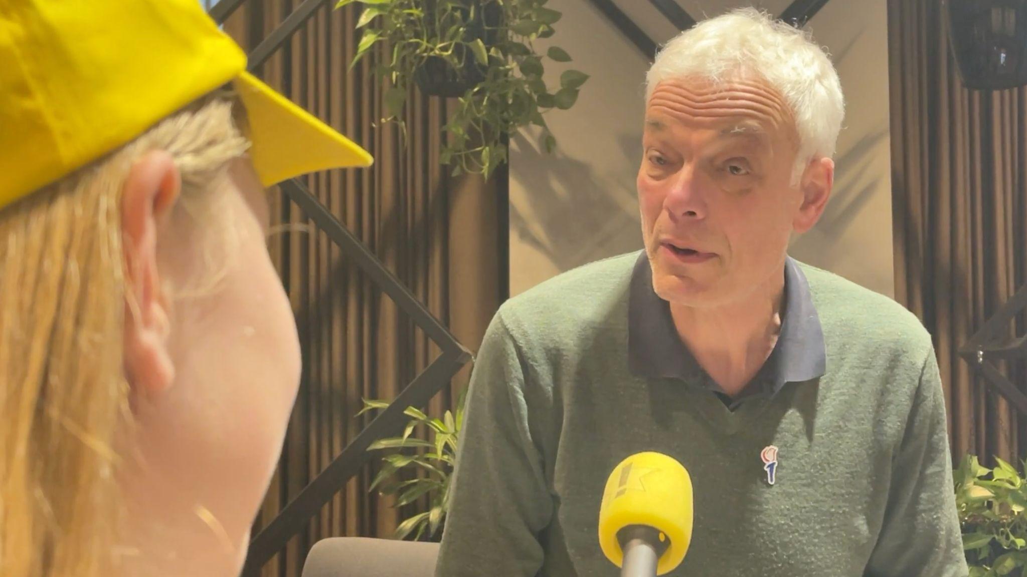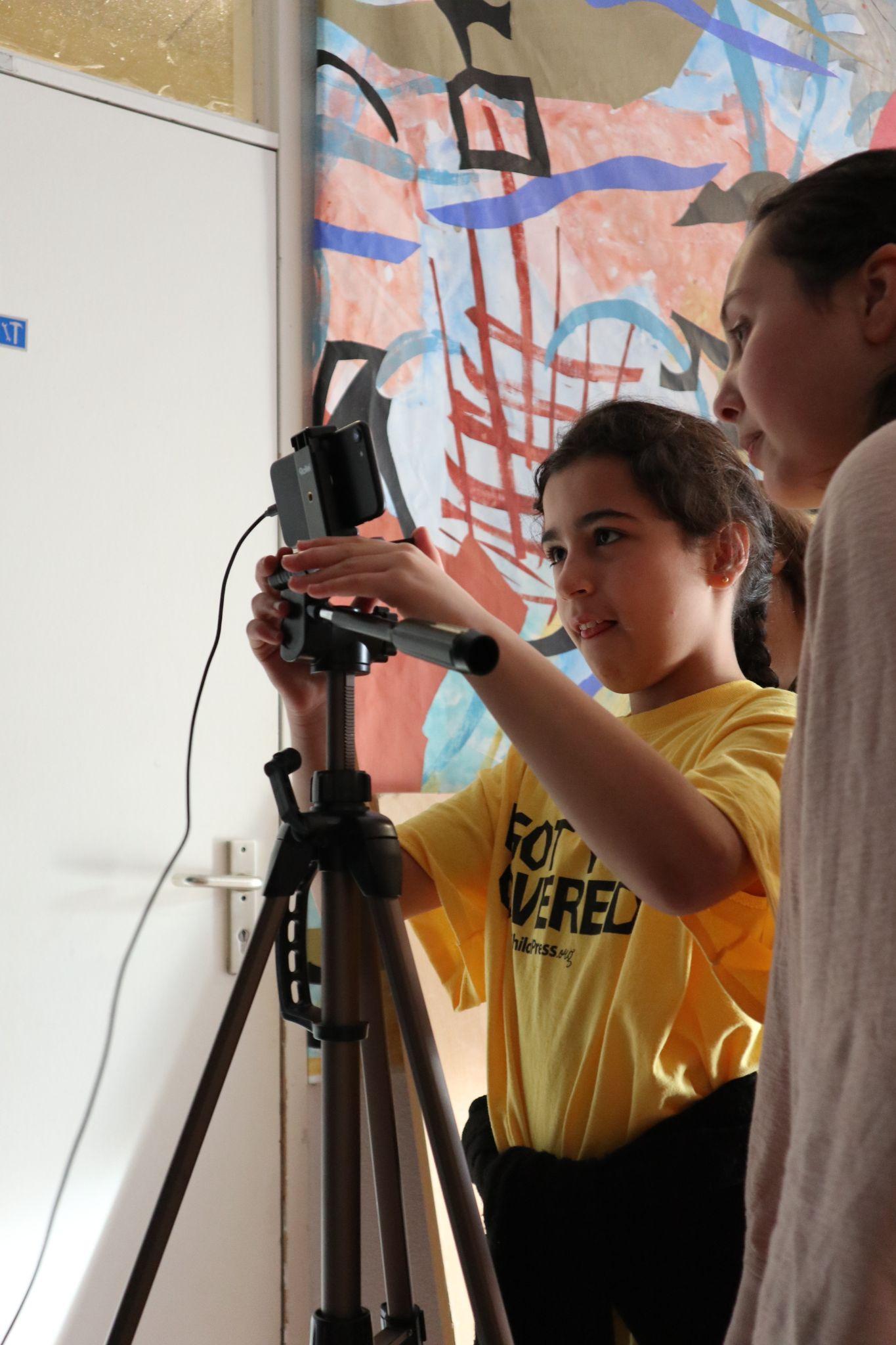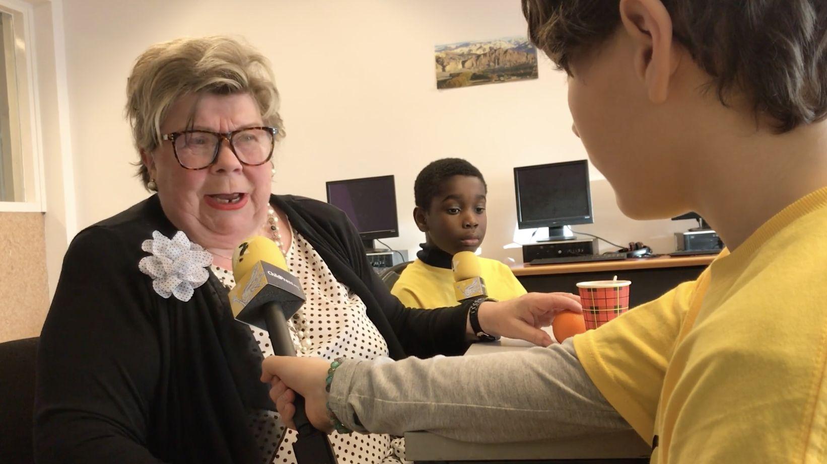 WE FILMEN HET INTERVIEW MET ONZE TELEFOON EN ZORGEN DAT HET GELUID GOED IS.