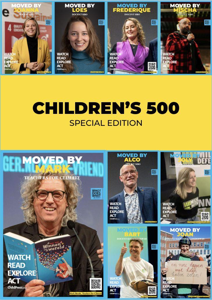 Die mensen dragen we voor voor de Children’s 500: een lijst van personen die volgens kinderen en jongeren écht inspirerend zijn. Het kunnen leraren zijn, ouders, zorgverleners, wethouders, vrijwilligers of buren. Niet allemaal mensen die in de schijnwerpers staan, maar die wél het verschil maken.