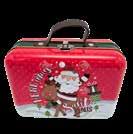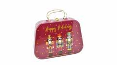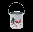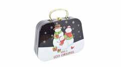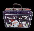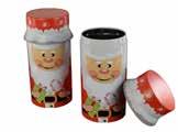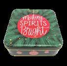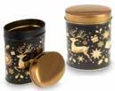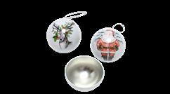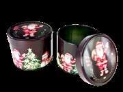 Christbaumschmuck Dose mit Inhalt aus elektrolytischem Weißblech; bedruckt + Prägung