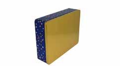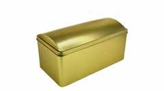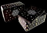 Rechteckige Scharnierdeckeldose aus elektrolytischem Weißblech; schwarz + gold