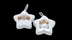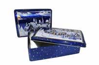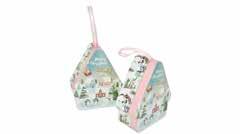 Sonderform Baumschmuck Stülpdeckeldose ; aus elektrolytischem Weißblech; bedruckt