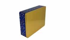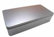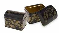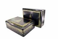 Rechteckige Stülpdeckeldose aus elektrolytischem Weißblech; schwarz + gold