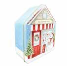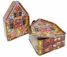 Sonderform Haus; Stülpdeckeldose aus elektrolytischem Weißblech; bedruckt
