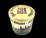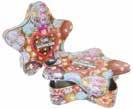 Sonderform Scharnierdeckeldose als flache Kugel aus elektrolytischem Weißblech; bedruckt
