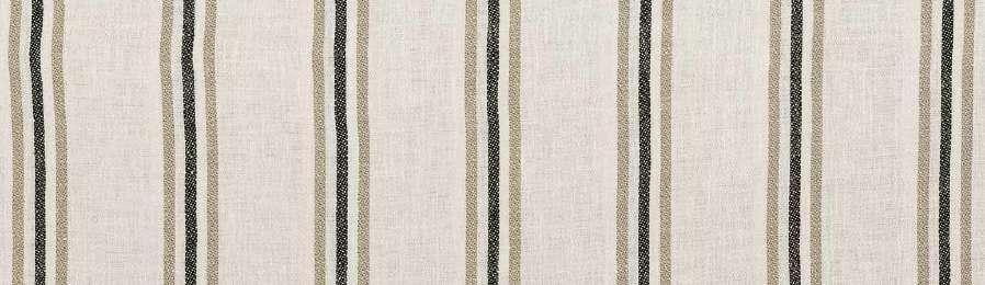 • Faro: tessuto che combina una riga jacquard in toni écru e nero su una base 100% lino. La sua elegante qualità lo rende ideale per diverse soluzioni decorative, come il confezionamento di tende, plaid, complementi per il letto o rivestimenti per la tappezzeria.