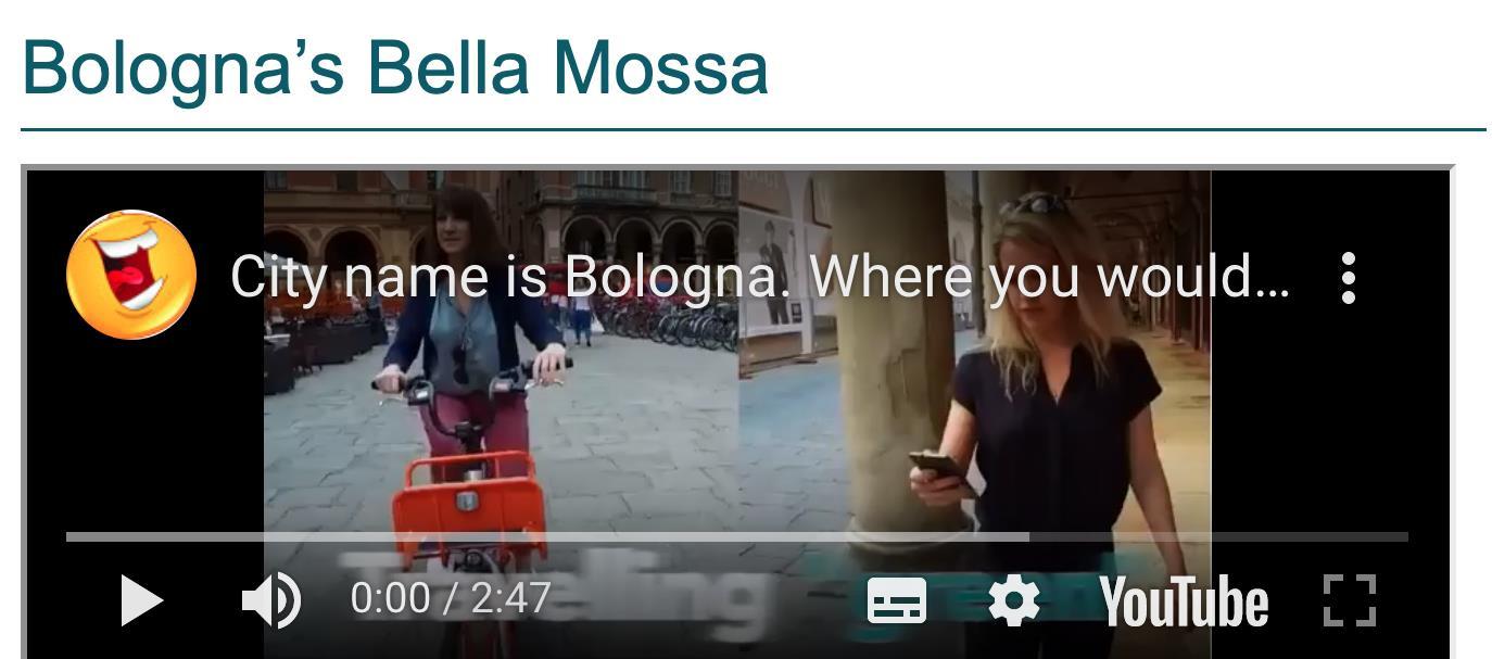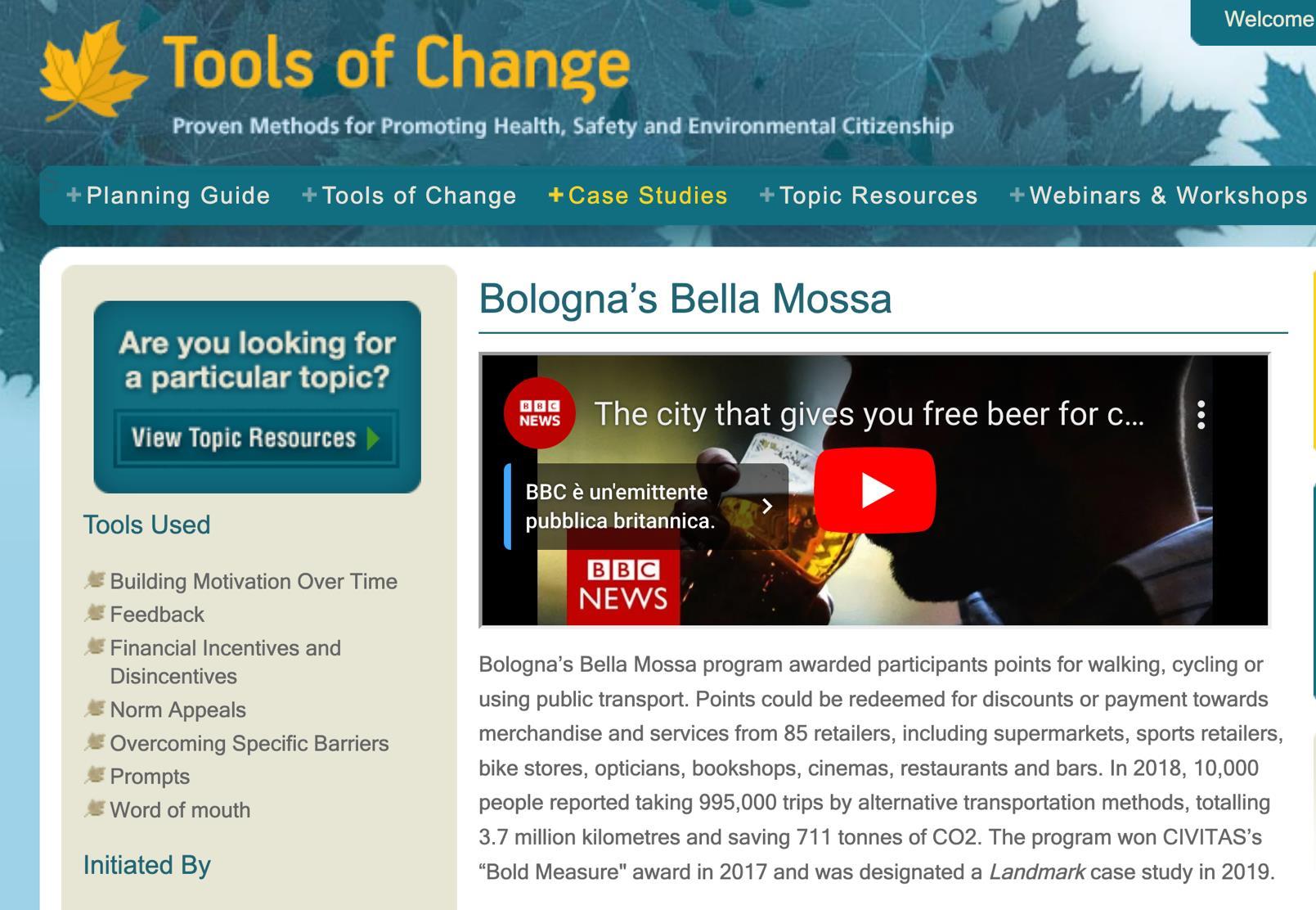 Il programma Bella Mossa di Bologna ha assegnato punti ai partecipanti per camminare, andare in bicicletta o utilizzare i mezzi pubblici. I punti possono essere riscattati per sconti o pagamenti su merci e servizi di 100 rivenditori, (bar, ristoranti, cinema, supermercati, librerie, ...)