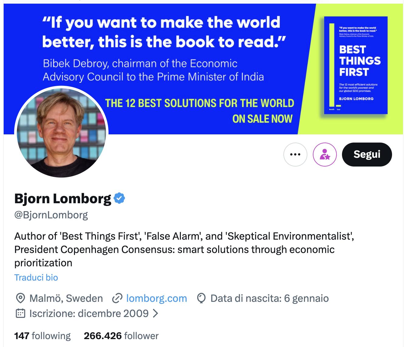 The Skeptical Environmentalist ha trovato una cosa sorprendente: secondo