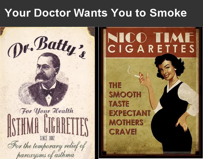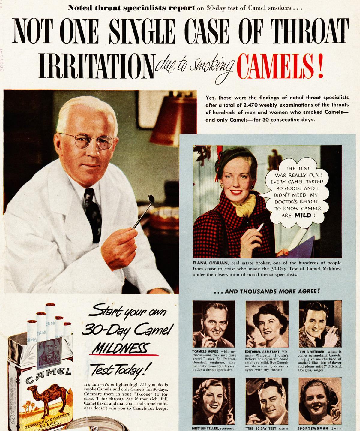 This genre of ads regularly appeared in medical journals such as the Journal of the American Medical Association, an organization which for decades collaborated closely with the industry.