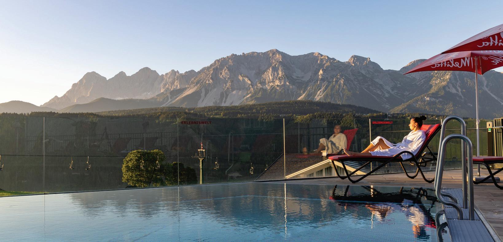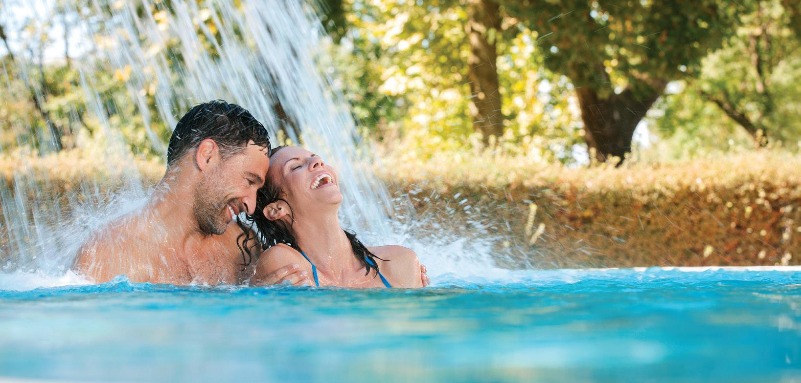 Eingebettet in die sanfte Hügellandschaft des oberösterreichischen Innviertels erwartet Sie das Spa Resort Geinberg. Mit 3.000 m² Wasserfläche bietet das Resort ideale Bedingungen für vollkommene Erholung. Fünf Becken mit Temperaturen von 26 bis 35 °C laden zum Abschalten ein: großzügiges Indoor- und Outdoor-Thermalwasser-Becken, Frischwasser-Sport-Becken, Kaskaden-Becken und Karibik-Lagune mit Salzwasser, Sandstrand und Palmen. Die Karibische Saunawelt begeistert mit 11 abwechslungsreichen Themensaunen, Dampfbad und vielfältigem Aufgussplan – ein Paradies für Sauna-Liebhaber.