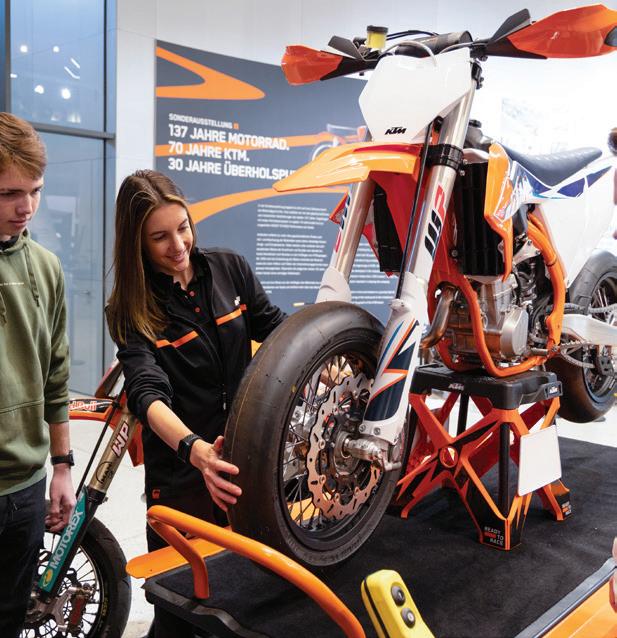 Auf 2.600 m² bietet die interaktive Ausstellung jedem Besucher ein ganz besonderes Erlebnis: Es geht um Helden, ihre Bikes und ihre Abenteuer, Geschichte sowie Innovationen und Technik rund um das Thema Motorrad und die Marke KTM.