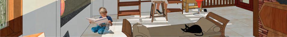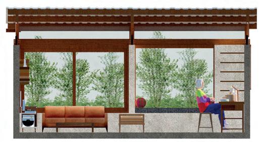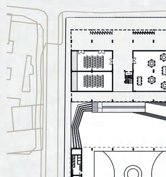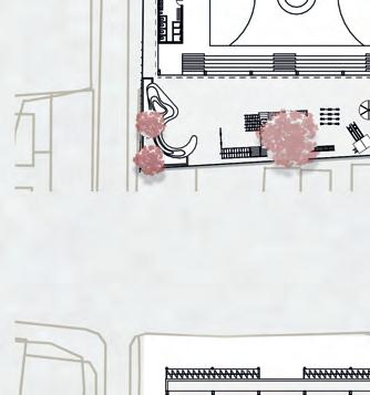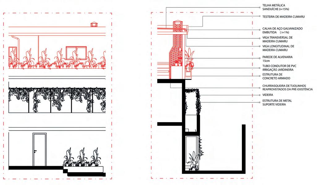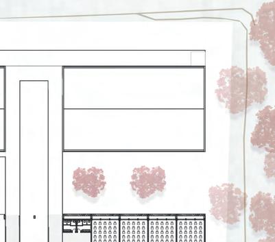 sui uma saída para o mesmo. Dessa forma, nosso intuito é integrar completamente esse espaço a partir da reformulação das poucas áreas de permanência já existentes, proporcionando conforto e, possibilitando, portanto a criação de três dispositivos diferentes: um ateliê/ escritório mais reservado, um pergolado perto da videira cen-