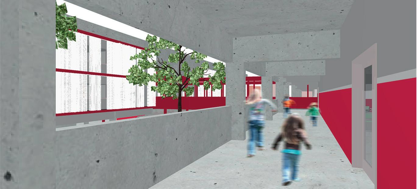 A diferença dos gabaritos dos blocos à oeste para o bloco à leste do terreno visa privilegiar a vista das salas de aula