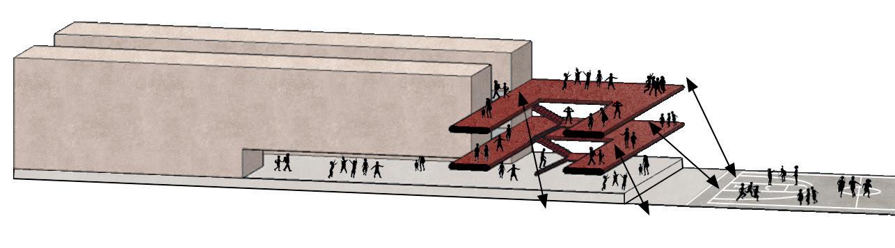 acessíveis aos moradores no entorno, que contém uma topografia bastante marcada, com curvas de nível acentuadas, preenchidas por uma vasta vegetação e diversas edificações, formando uma ilustre paisagem. A perspectiva de projetar nesse terreno possibilitou ensaiar estratégias de ocupação e organização de espaço, procurando privilegiar o percurso dentro da escola e as vistas seriais decorrentesdo movimento neste espaço.