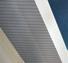 fixos e móveis no bloco das salas e somente fixos no bloco dos laboratórios e na quadra, sendo esta última, uma pele metálica. Tais elementos não só filtram a intensidade dos raios solares e amenizam a velocidade do ar no interior da unidade, mas também