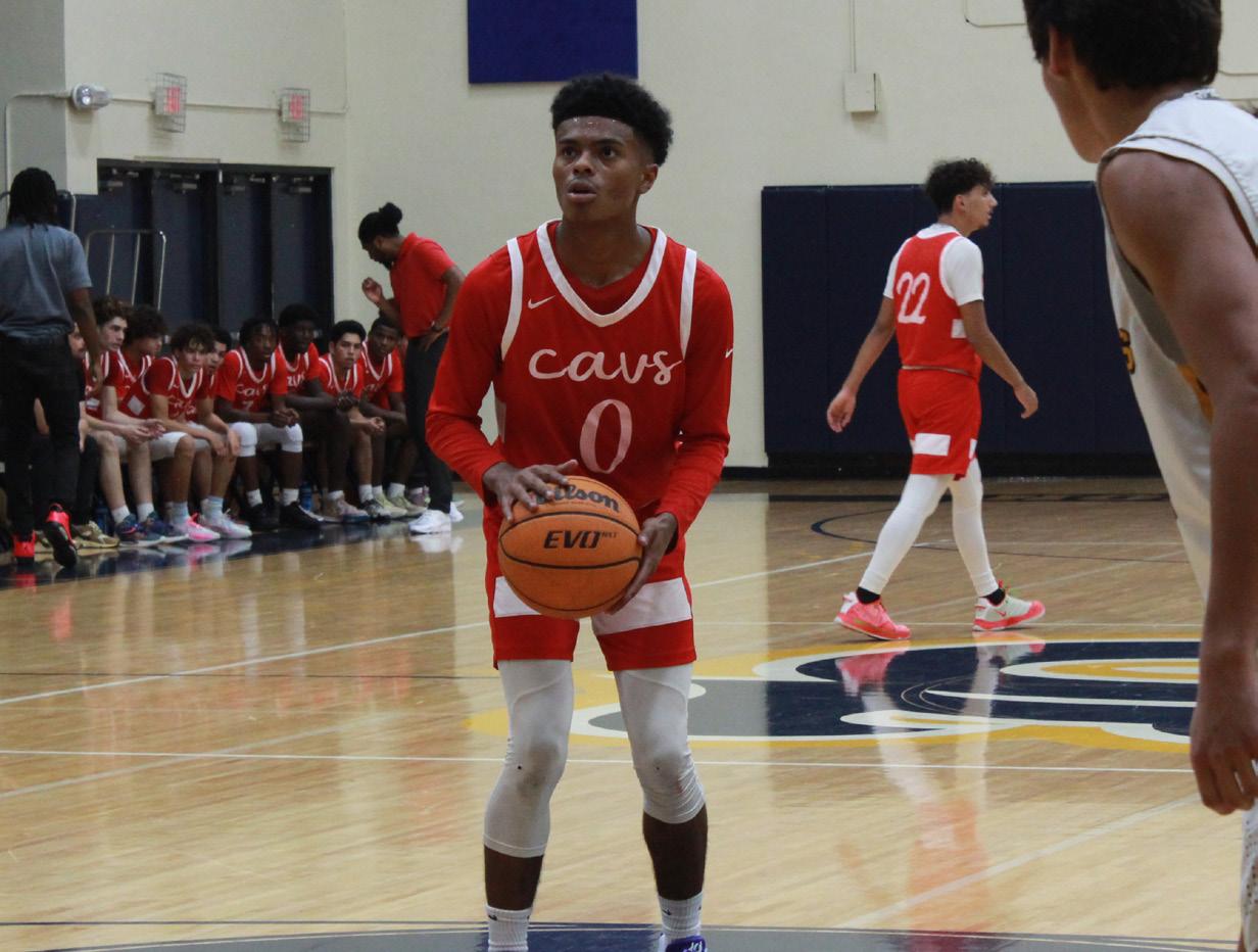 READY TO SCORE: Senior and boy’s basketball captain Jayden Horne prepares to shoot a basket in a game against the Belen Wolverines.