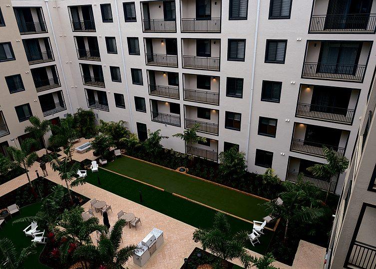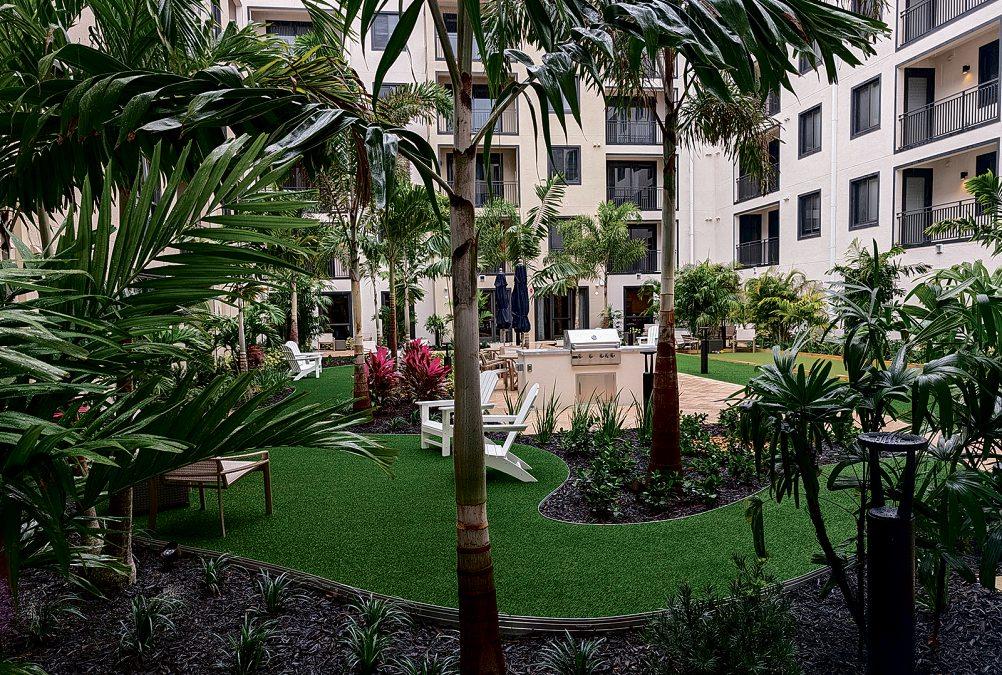 Residentslove the rooftoppooland terracewheretheycan enjoythe outdoor kitchen,firepitandloungingareas.They enjoythecourtyardwithitsbocceballand sittingareas.Mostsaytheyusethefitness centerandthedogpark.