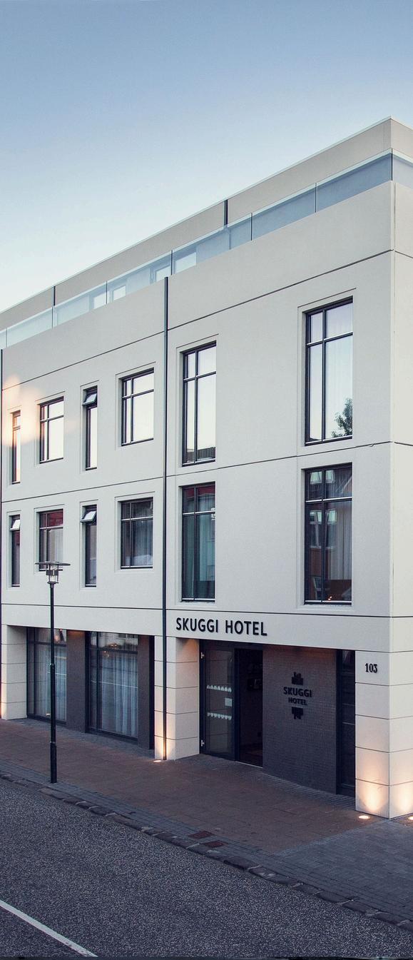 Welcome to Skuggi Hotel, where timeless comfort meets contemporary design in the heart of Reykjavik. Just steps away from the city's best attractions, Skuggi provides a perfect balance of clean lines, outstanding service, and an unbeatable location for an unforgettable stay. Inspired by the play of light and shadow, the hotel's design is enhanced by striking black-and- white photographs from renowned Icelandic photographer RAX. His evocative images bring the contrasts of Icelandic nature into focus, reflecting the meaning behind "Skuggi" a celebration of shadows, light, and the beauty in between