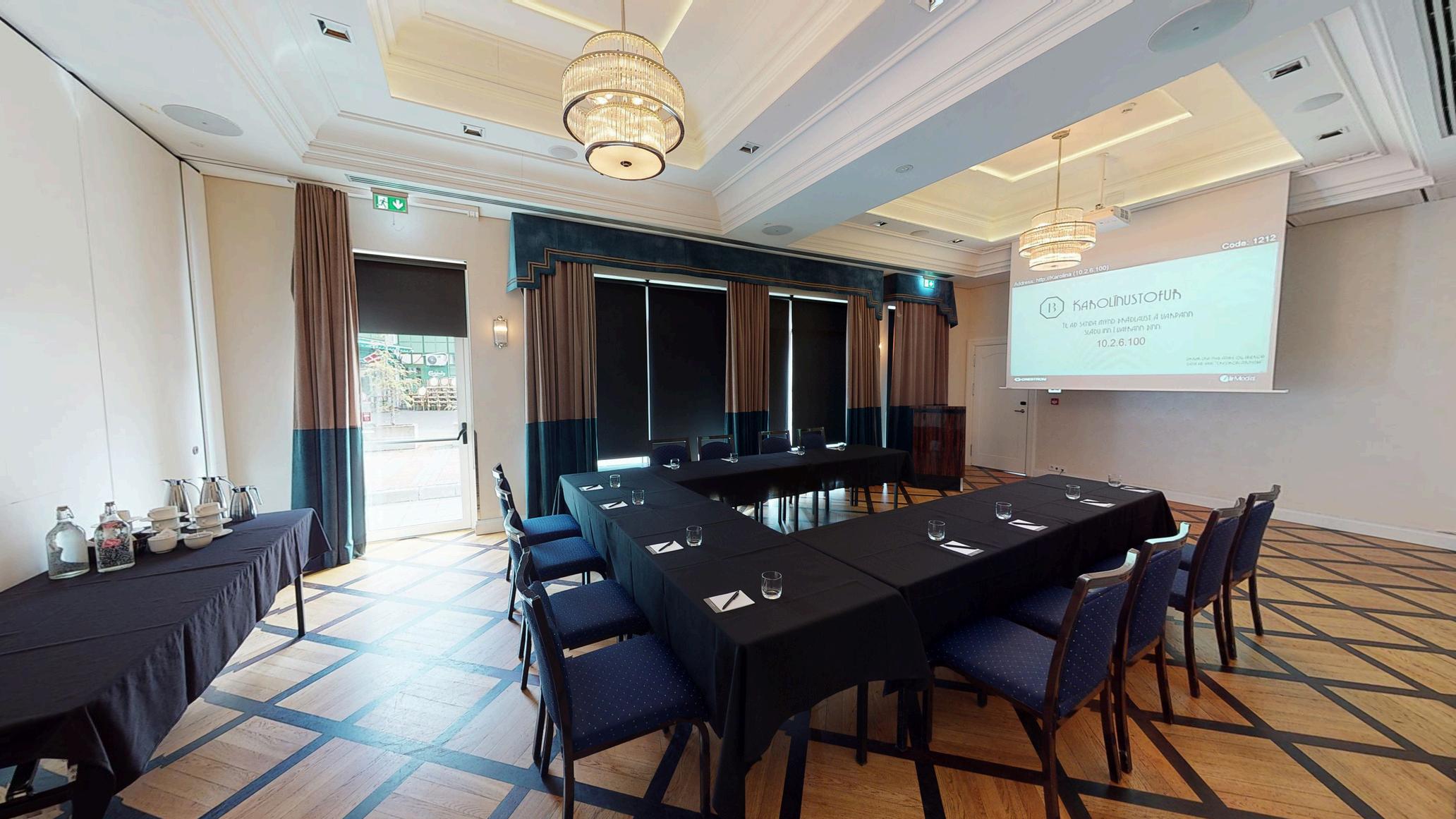 The hotel offers meeting space suitable for smaller groups of up to 15 people. The room can be arranged in various seating configurations to suit your needs. The room features a large flat-screen TV that can be connected to a computer, along with an excellent video conferencing system. Free WiFi is also available.