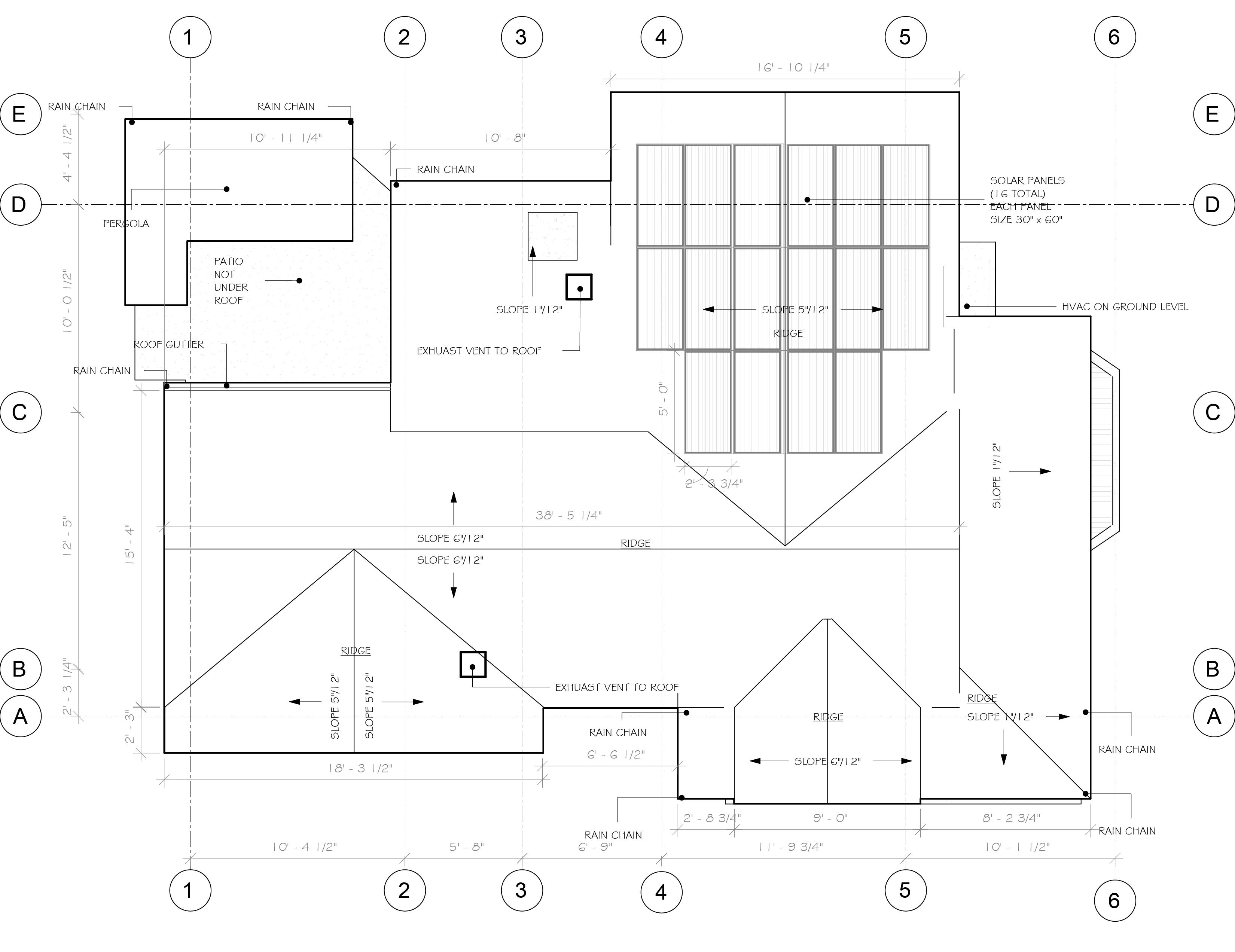 A. SLOPES OF THE ROOF VARY BETWEEN 6”/12”, 5”/12”, AND 1”/12”