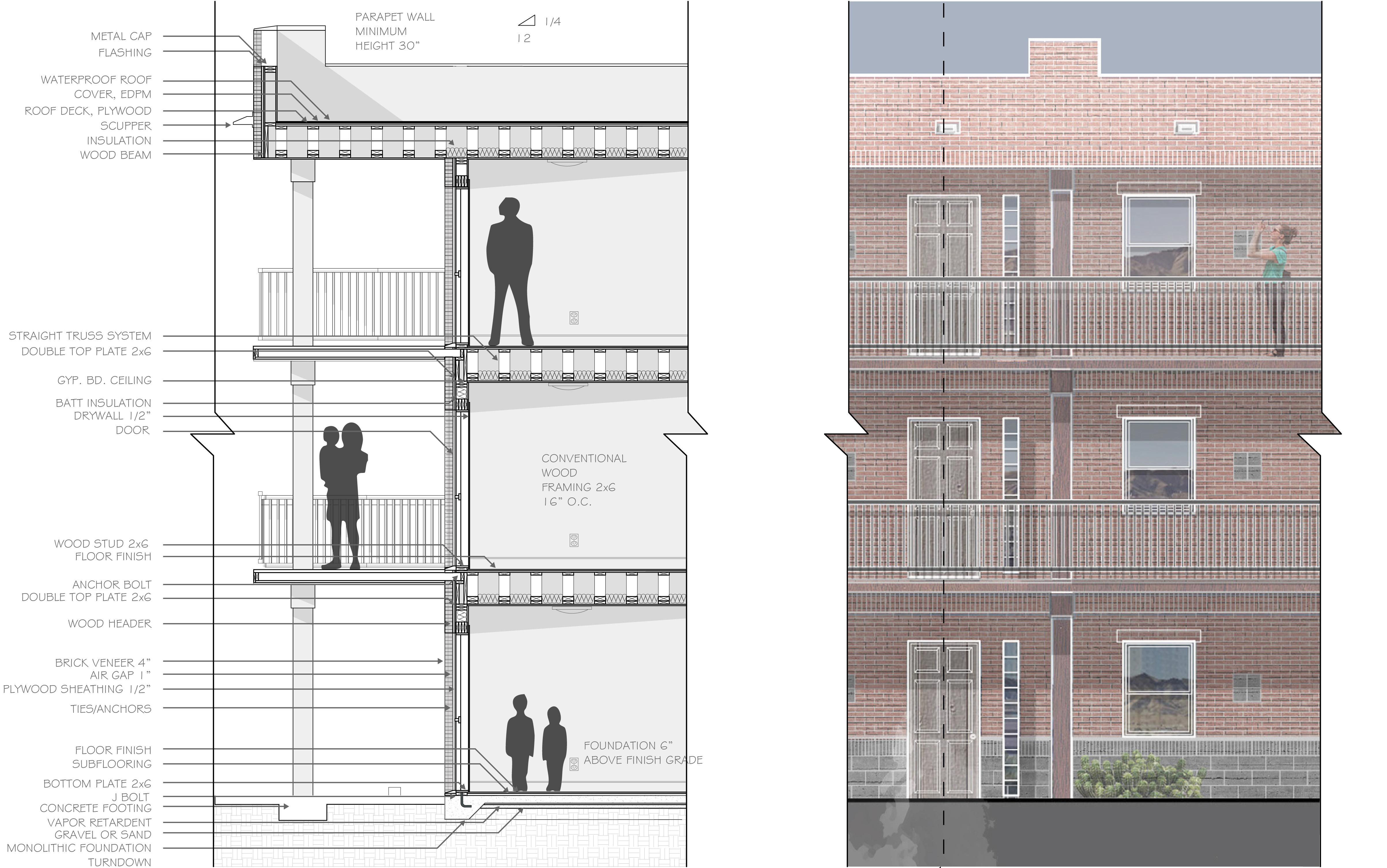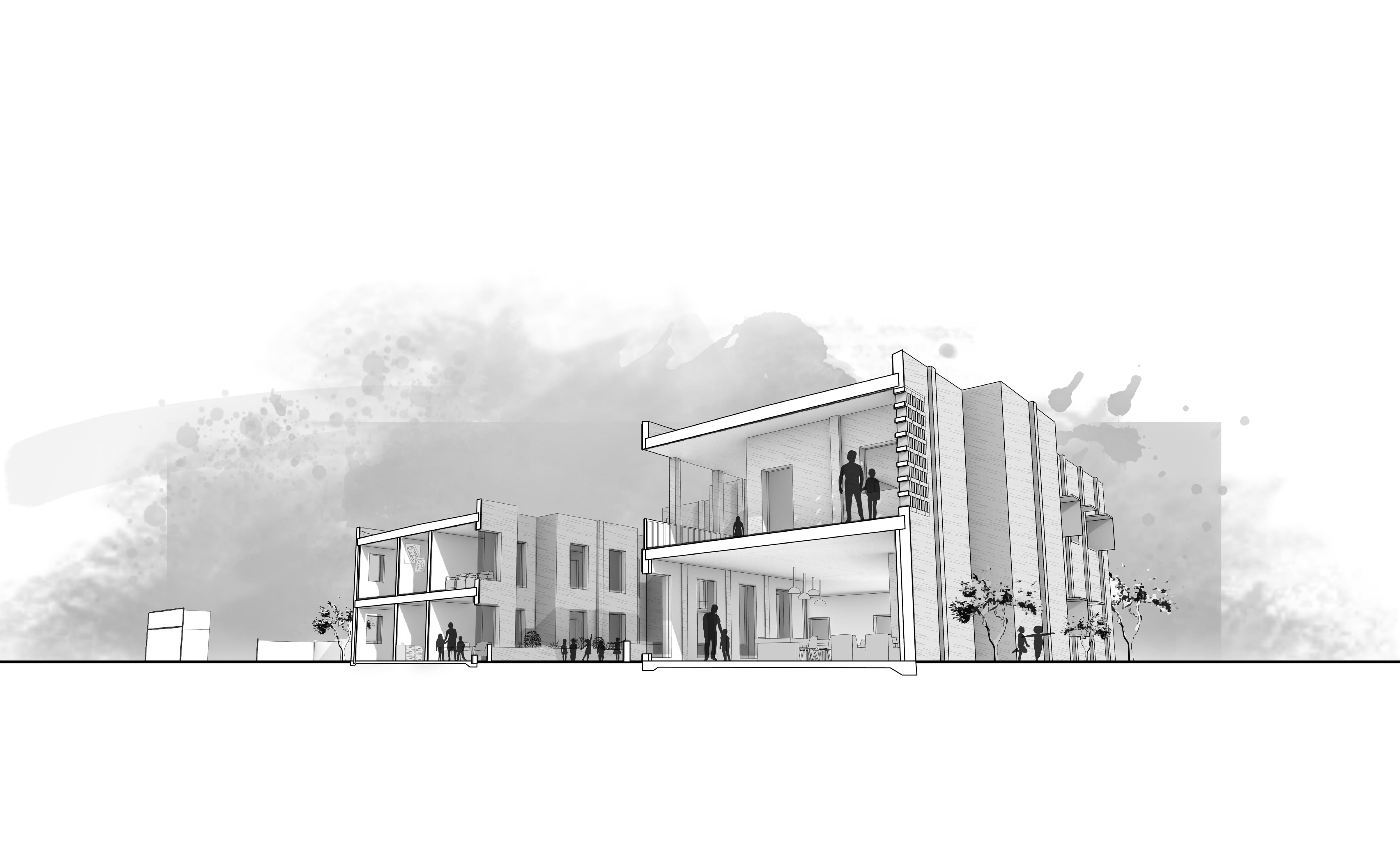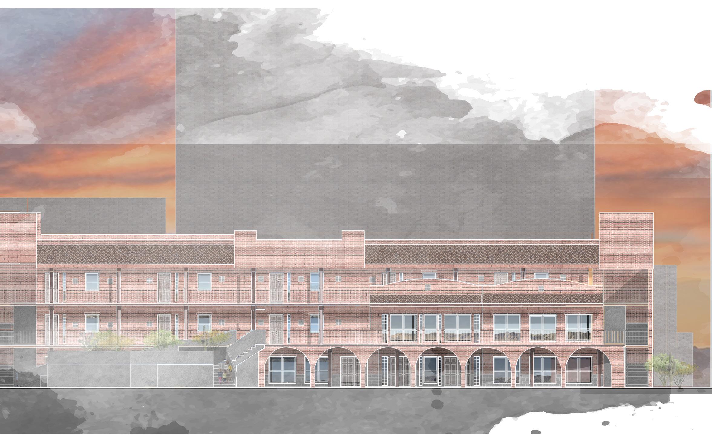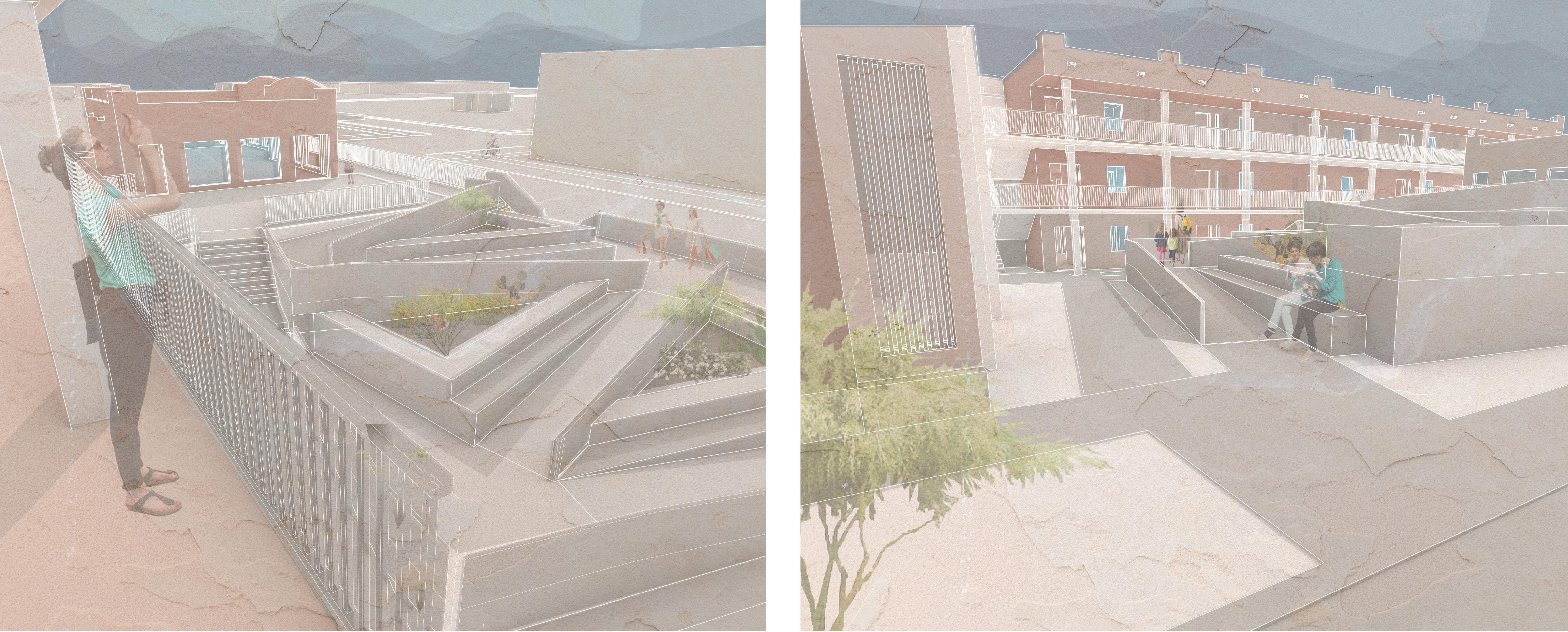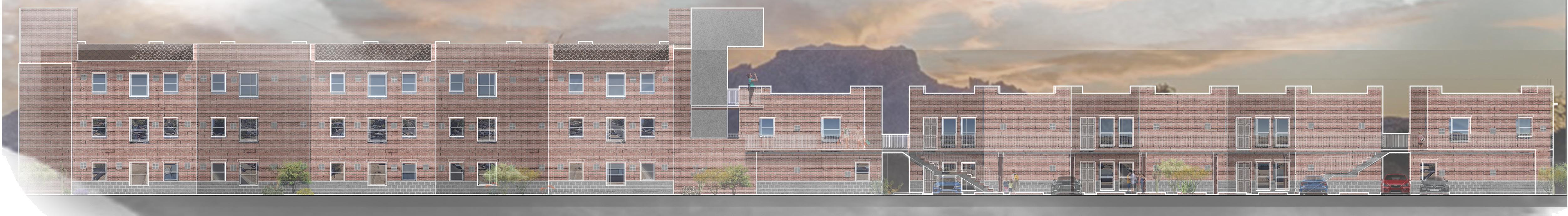 In response to the studio prompt, the project frames housing as a fundamental human right, while addressing broader challenges related to climate resilience, equity, and inclusivity. Site research revealed a historically significant Hispanic community shaped by discriminatory practices and redlining, informing a design approach rooted in cultural awareness and social responsibility.