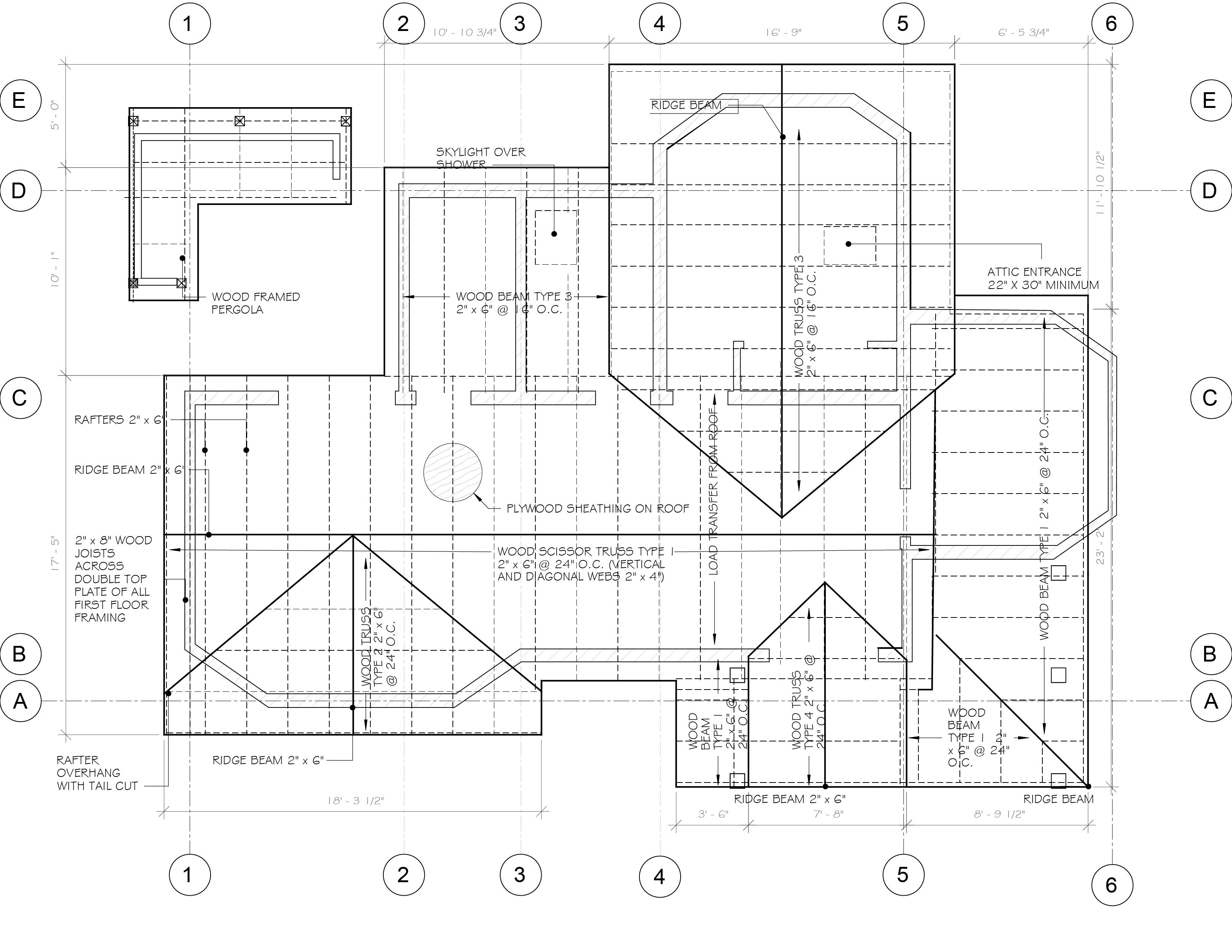T. TRUSS TYPE 3 SIMPLE FINK TRUSS SPANS OF 12’ - 8” WITH A HEIGHT OF 3’ - 1” (7 TOTAL)
