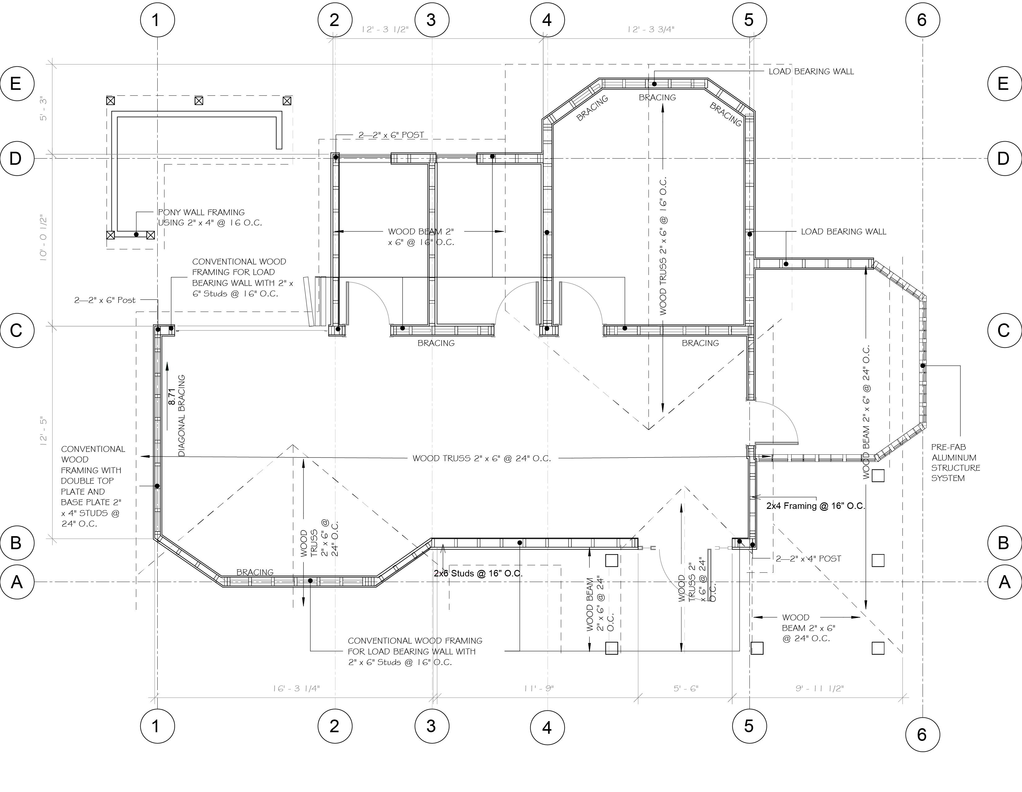 B. LOAD BEARING STRUCTURAL COLUMNS 2” x 6” @ 16” O.C.