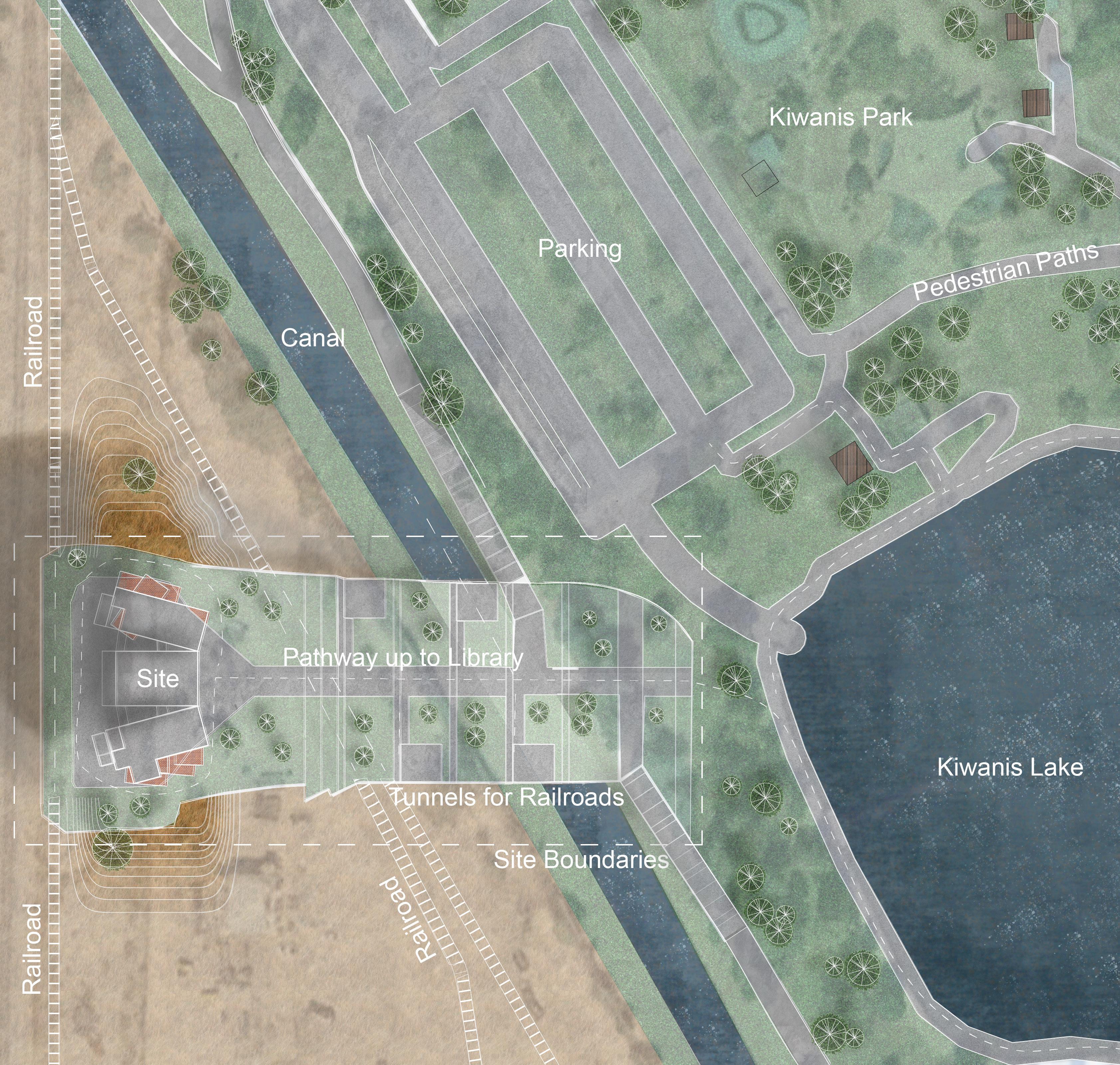 The chosen site was due to the popularity of Kiwanis park, a central outdoor public space. However, as the site does not have a central indoor public space, this library provides a space the community needs.