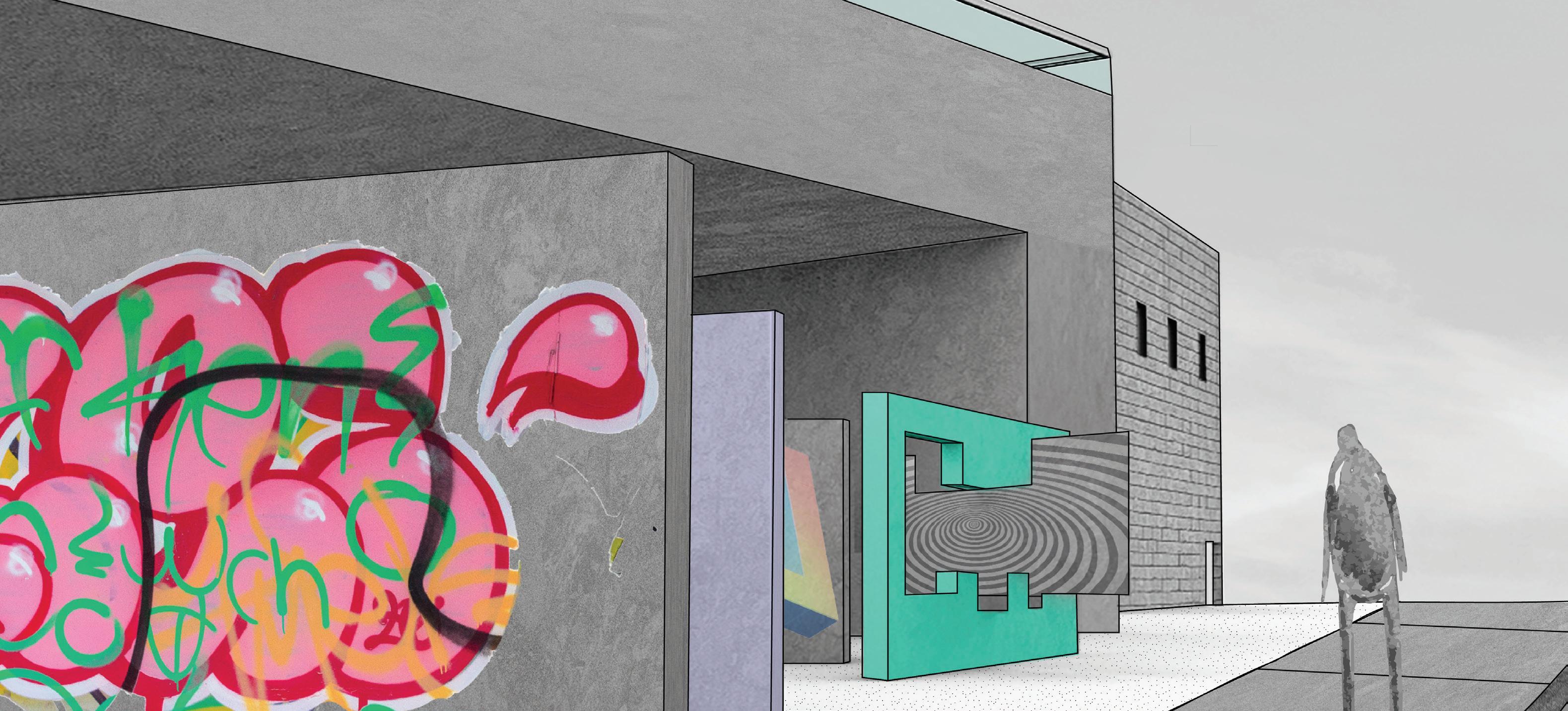This project aims to revive a neglected site by creating spaces that combine commerce, community, and creativity, offering opportunities for engagement, self-expression, and social cohesion. It is all tied together with different forms of the arts, physical, visual, and literary.
