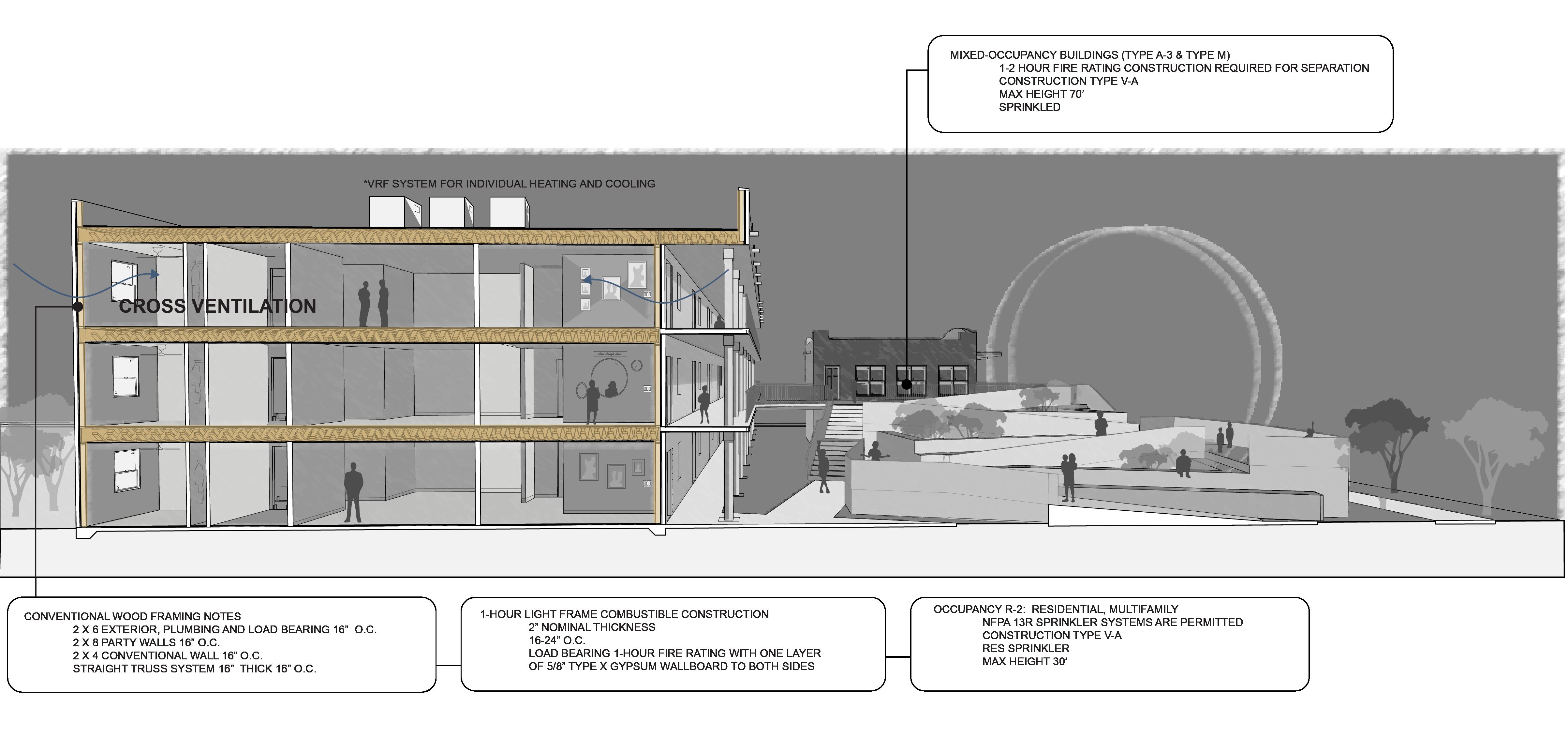E. VENTIALATION AND HVAC ARE LOCATED ON THE INTERIOR LOADING BEARING WALL