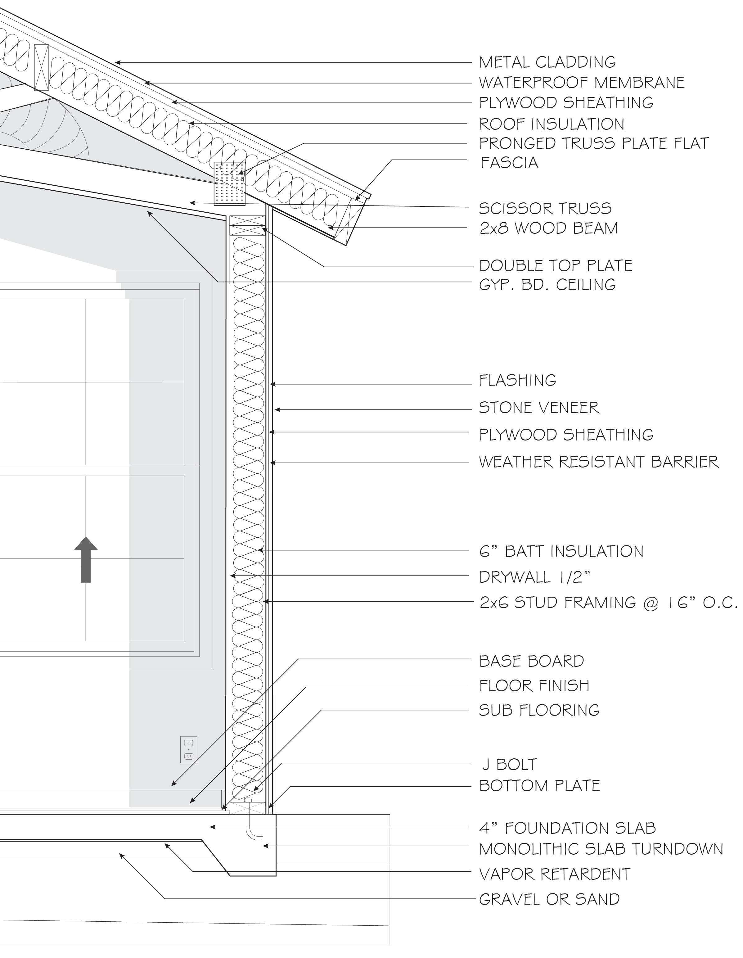 J. BATT INSULATION LOCATED IN INTERIOR WALL FRAMING, SPRAY FOAM INSULATION ON EXTERIOR WALL FRAMING AND ROOF FRAMING