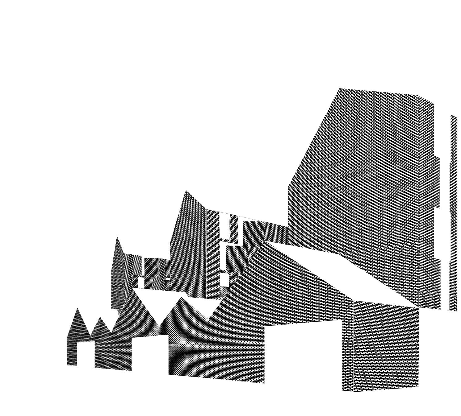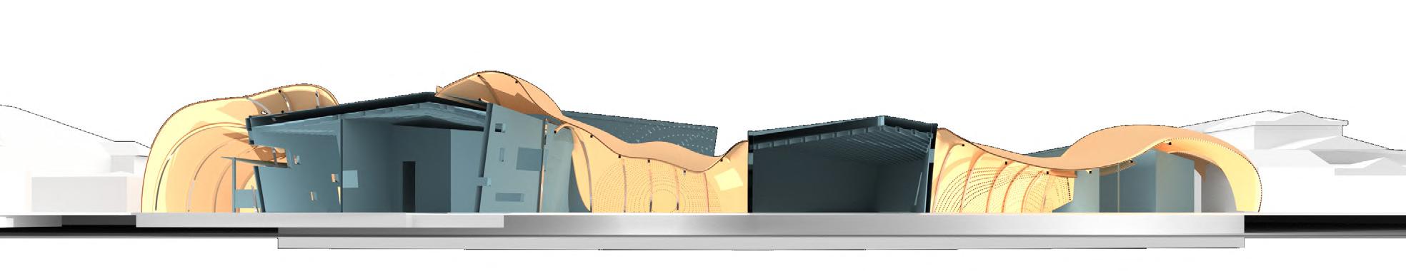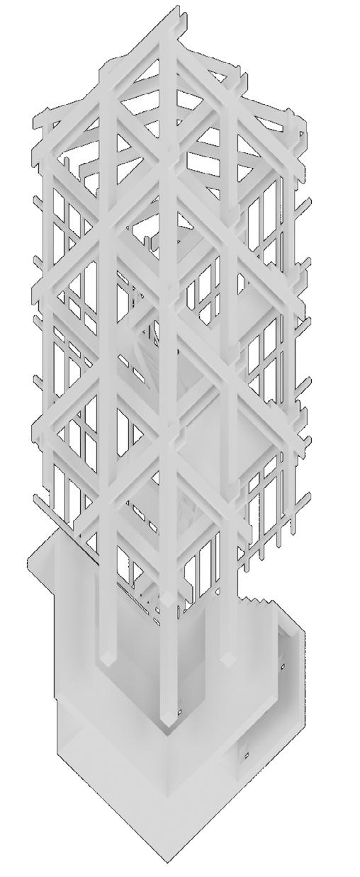 Additionally, wrapped around the existing tower, framing elements are used both to call attention and allow recovery for the existing ruins.