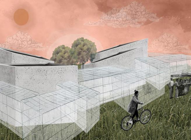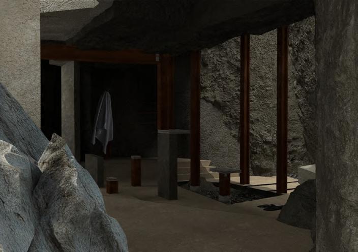 Embedded within the rocks and ruins, our park is a place for rest. It reflects on the charged and exhausting history of mining in Rio Marina while providing both the site and its visitors a space to rest. Although resting may have a different meaning to each individual, the project defines rest as a state of protection, recovery and emergence, freeing itself from never ending processes of work, extraction and decay in a serene way. At the park, one is protected to recover and later emerge from the density of life that before affected them. Similarly, through light, un-invasive architectural interventions such as framing, filling and stepping, these three definitions of rest are expressed. By framing the landscape, the individuals are protected, at ease. By filling, elements are added to support. And by stepping, boundaries between spaces of work and rest are defined.