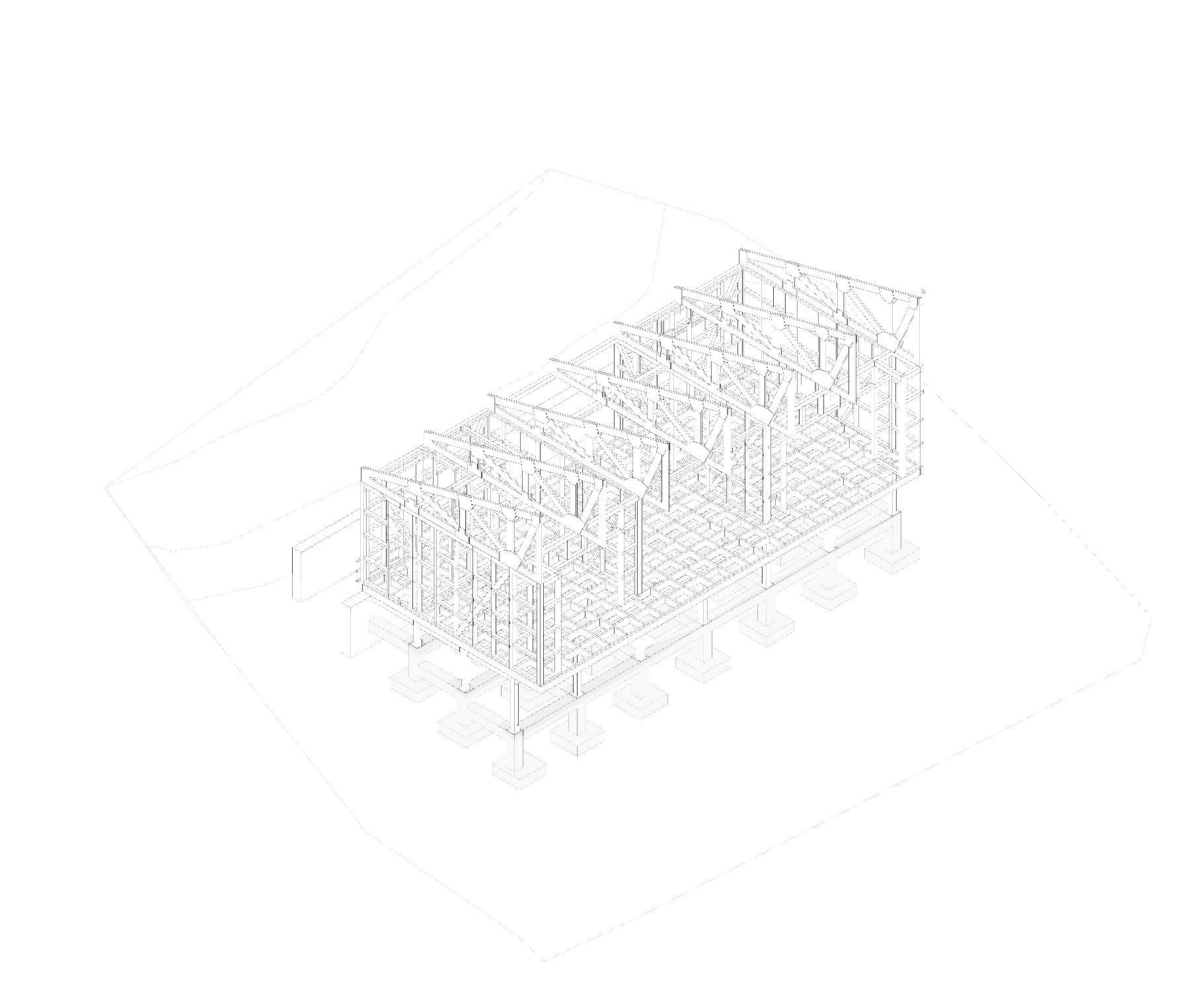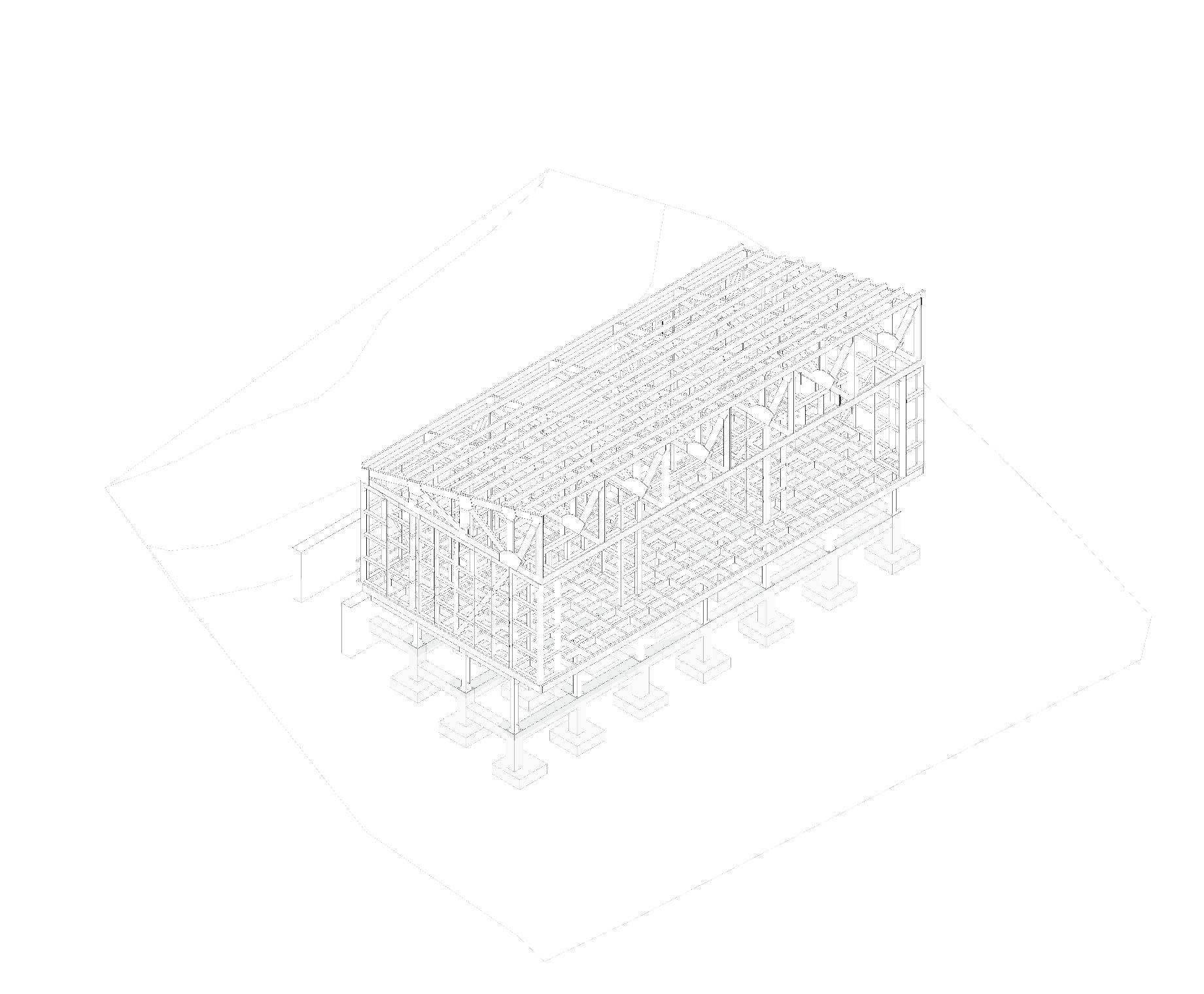 Axonometría detalle entrepiso y graderíos Axonometría explotada entrepiso y graderíos
