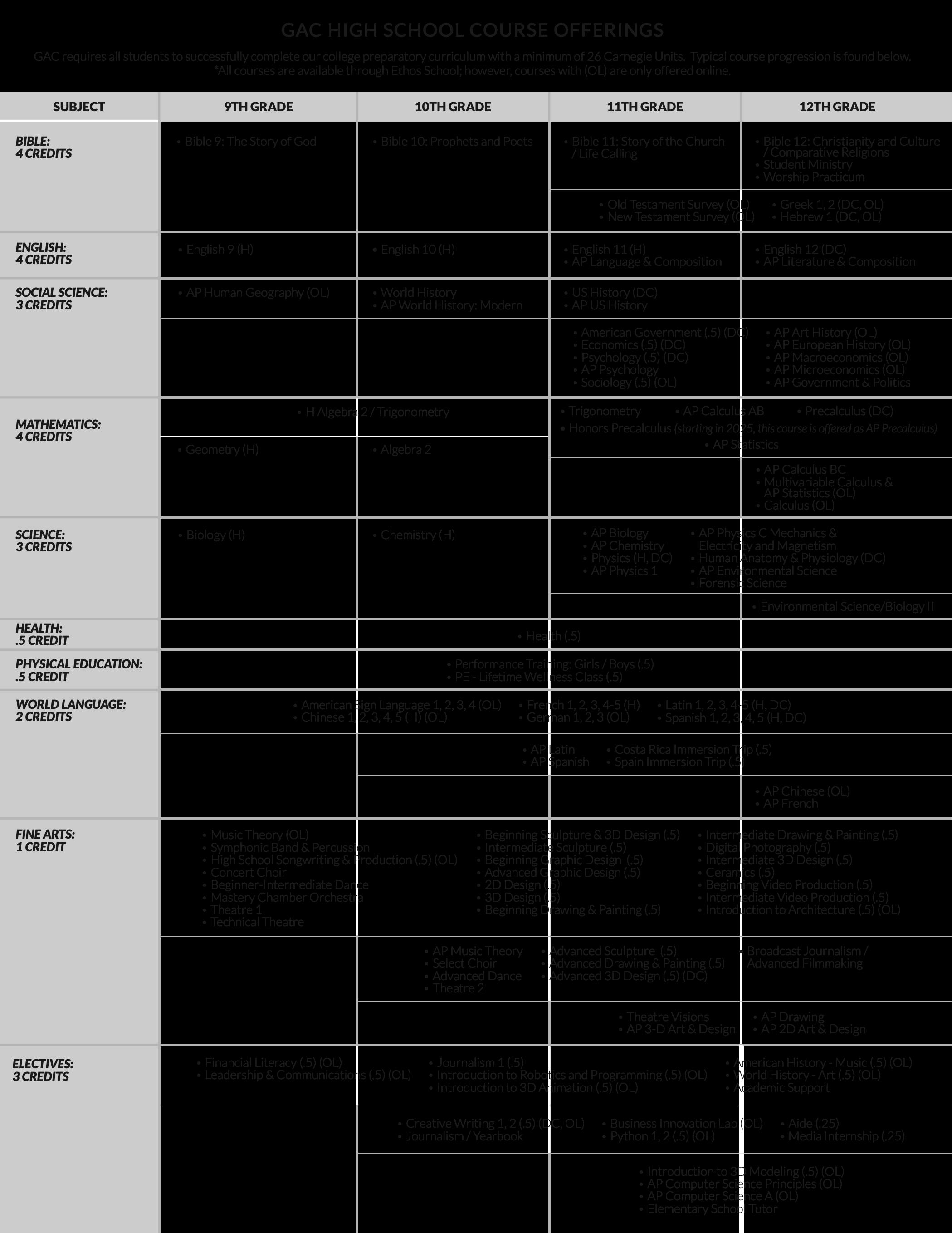 The following GAC courses will offer dual credit options for the 2026-2027 school year: