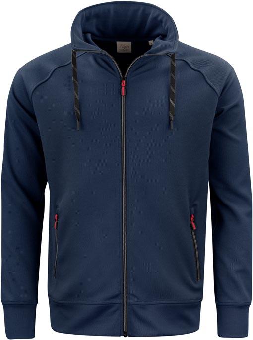 Sportliche Kapuzenjacke in Air Layer Konstruktion. Zwei Fronttaschen, Reissverschlüsse in Kontrastfarbe und dekorative Flatlock Nähte.