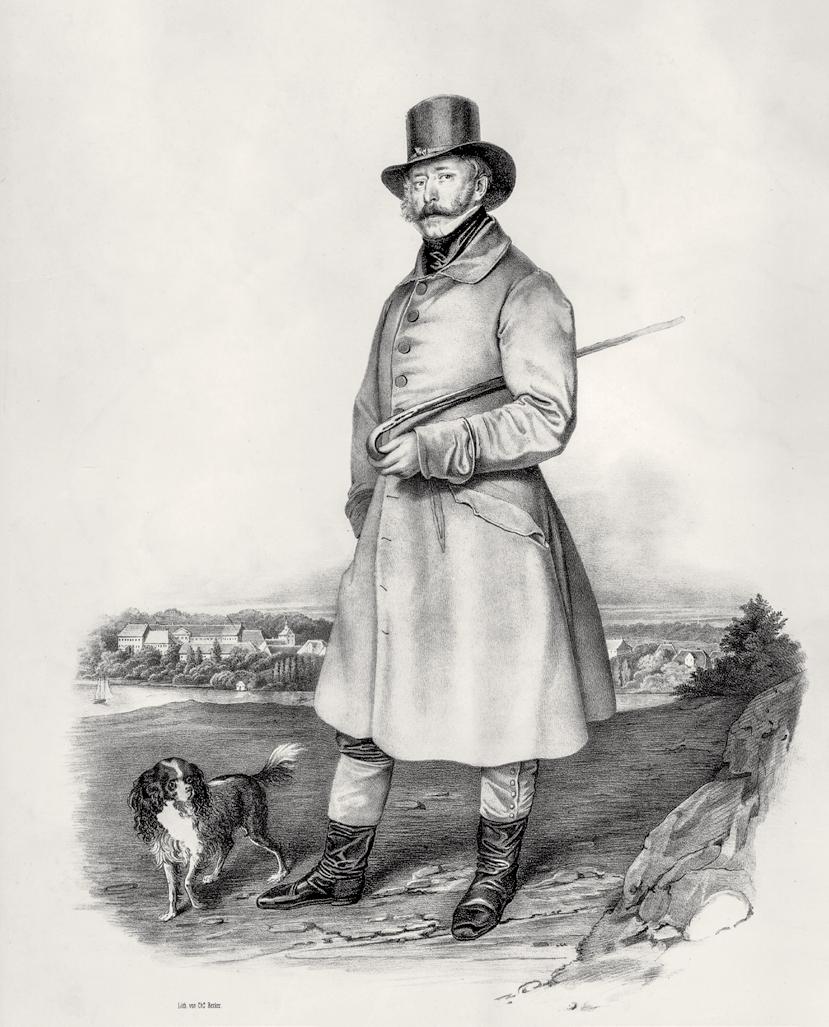 Hertug Christian August II ses på dette litografi af Th. Becker fra omkring 1846 i rideudstyr med frakke og hat, ridepisk og hund. Trods fritidstøjet får man indtryk af en myndig mand, der vidste at sætte sig i respekt hos betragteren. Han rejste Tyskland tyndt i 1840’erne, og en beklædning som denne har været praktisk, også på rejserne. Næsten helt til sin død i 1869 rejste hertugen meget.