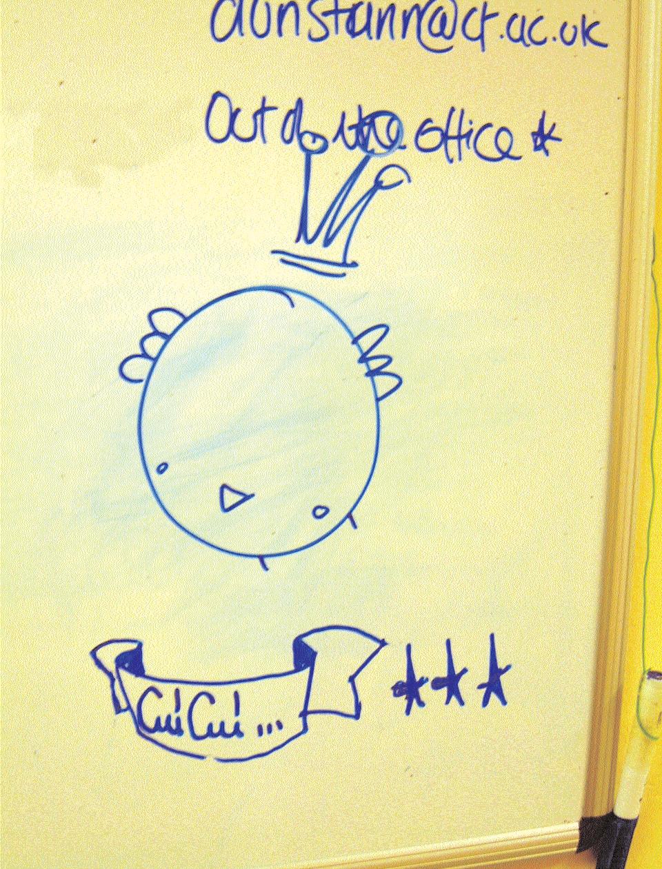 Here we find a fine example of the species cui cui graffitius excellis,more commonly known as Cui Cui. This shy,elusive animal’s natural habitat is the common billboard or wall,deep in Cathays. However, with natural predators such as bastardis policeus waiting to catch the diminutive creature,it has found refuge inside the Bute building - on a tutor’s notice board! You can do your part to help Cui Cui numbers flourish,by sending us photographic evidence of sightings. Remember,birdwatchers are not just weirdos in Barbour coats... Bill Oddie had the right idea.