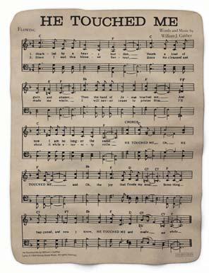 This unique blanket is made to resemble a full page of sheet music, featuring the well-loved tune “He Touched Me.” Printed in black on a cream background, this soft polyester blanket is even cozier underneath. Snuggle up in plush synthetic Sherpa fleece, and keep on singing.