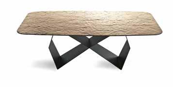 KarlTavolo con base in metallo verniciato. Piano in due versioni: vetro martellato o ceramica effetto marmo stratificata su vetro.