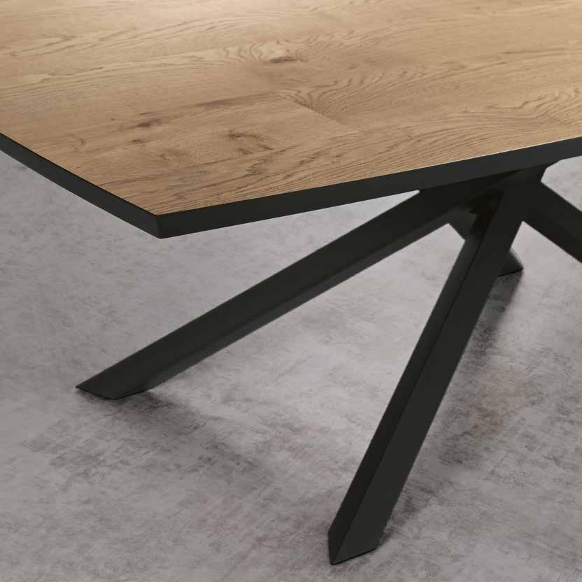 Tavolo WALL 200 x 100 cm, piano impiallacciato rovere termico, base metallo nero - Sedia VIVIENNE WALL table 200 x 100 cm, thermo oak top, black metal base - VIVIENNE chair