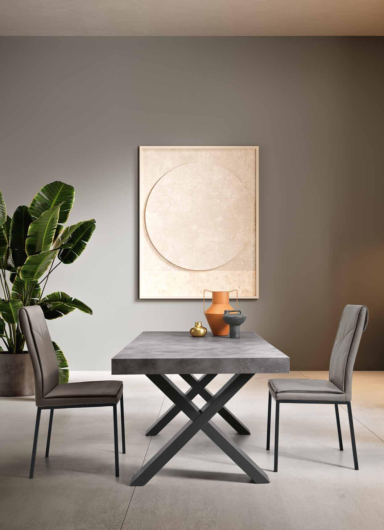 Tavolo DIVO 160 (+50 +50) x 90 cm cemento, basamento 2 - Sedia SILA / DIVO table 160 (+50 +50) x 90 cm concrete, frame 2 - SILA chair