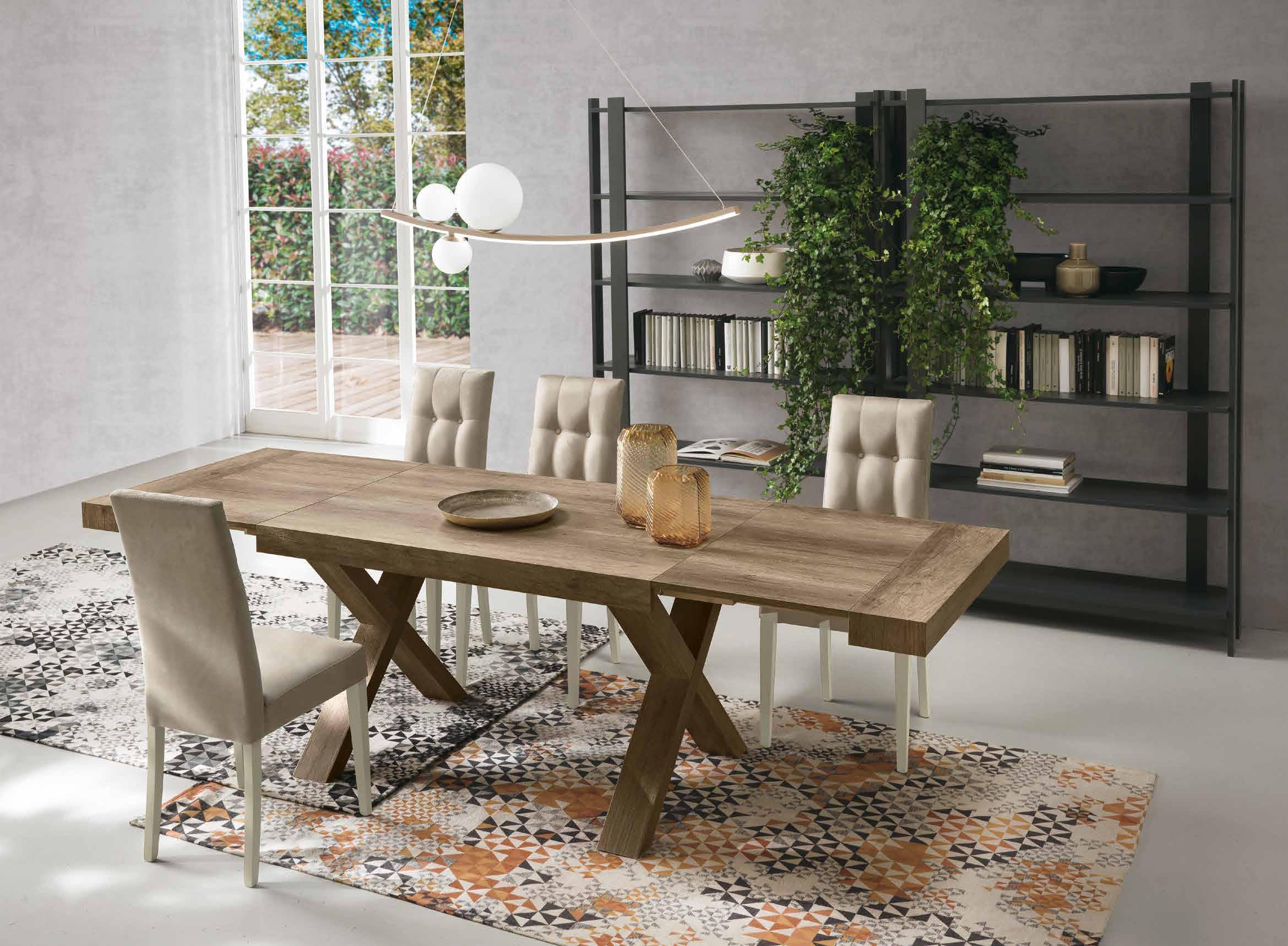 TAVOLO APERTO CON DUE ALLUNGHE LATERALI DA 50 CM - OPEN TABLE WITH TWO 50 CM SIDE EXTENSIONS
