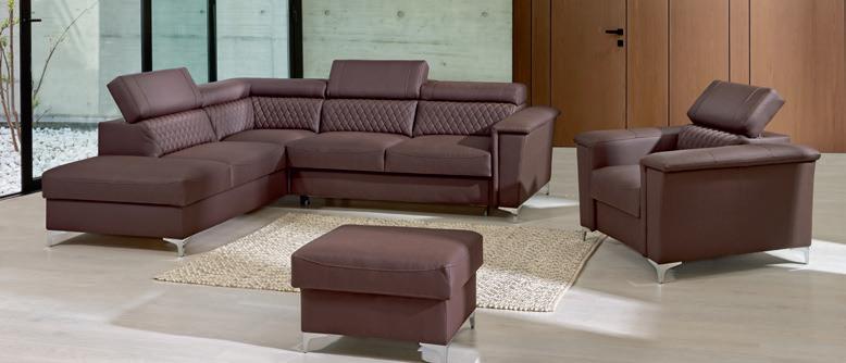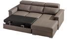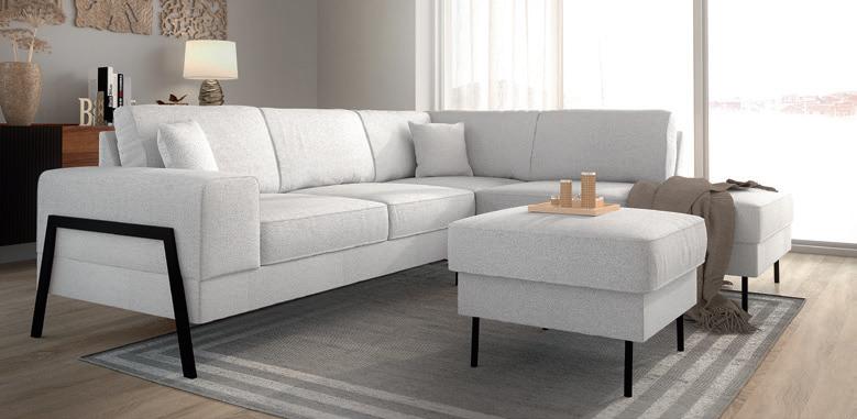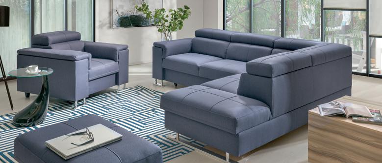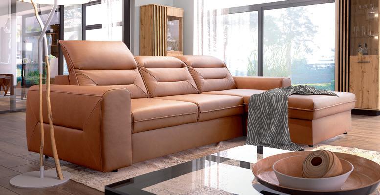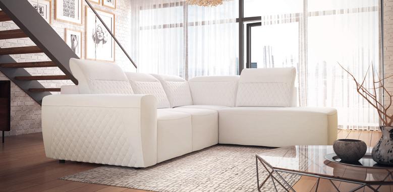 Narożnik 3 systemu Vento posiada funkcję Glide (wysuwane siedziska) dzięki, której możemy dostosować niezależnie głębokość siedzisk w zależności od potrzeby. Głębokość siedziska przed wysunięciem wynosi 56 cm, a po wysunięciu 77 cm. W rogu narożnika znajduje się funkcjonalna półka.